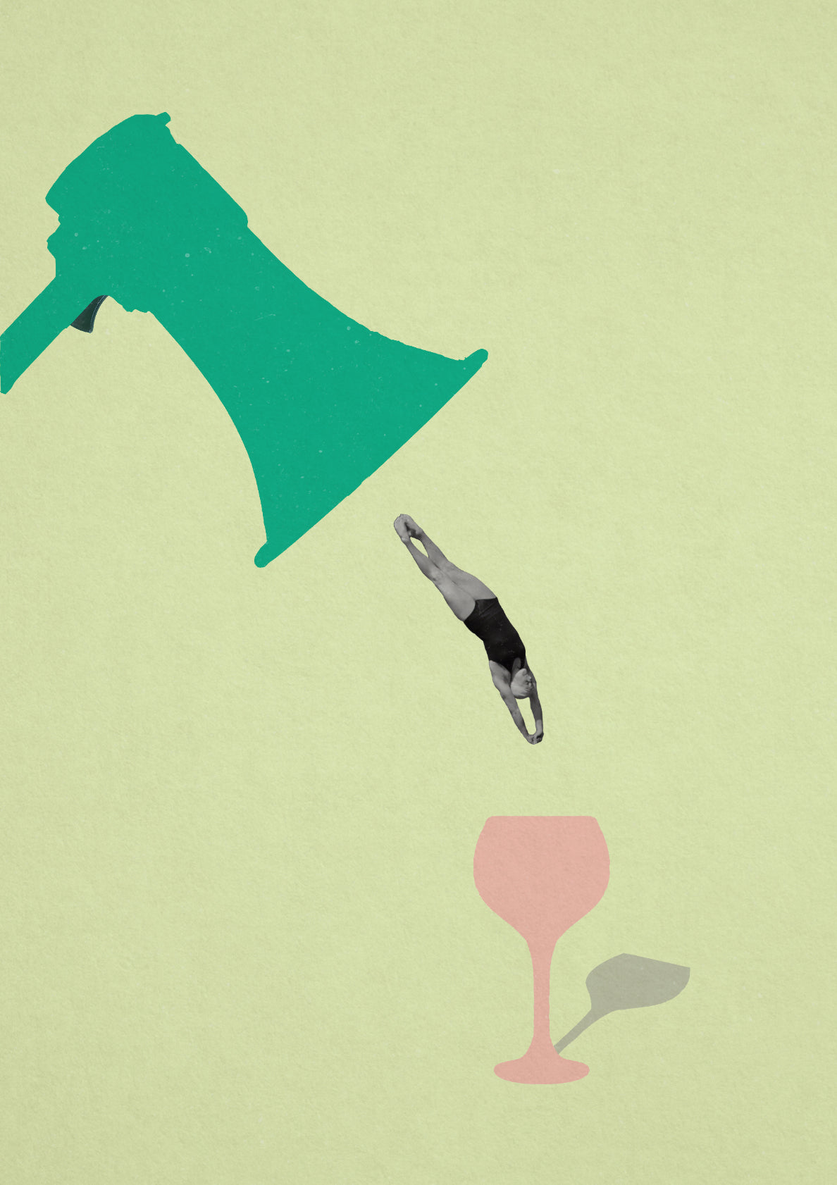 This piece is part of a series created using a vintage photograph of an olympic board diver.