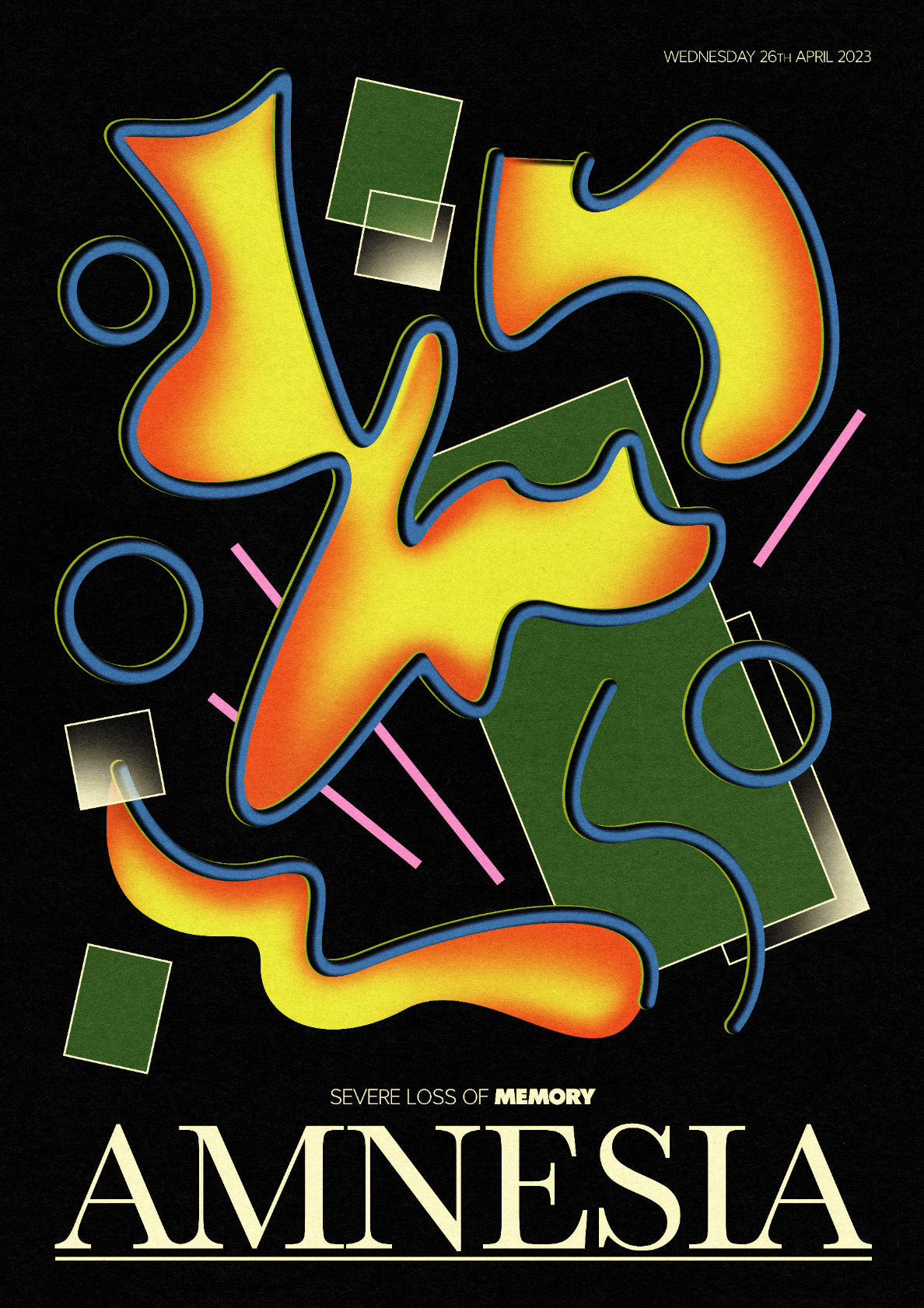 Amnesia : Severe Loss Of Memory. Retro composition inspired by the 70s/80s