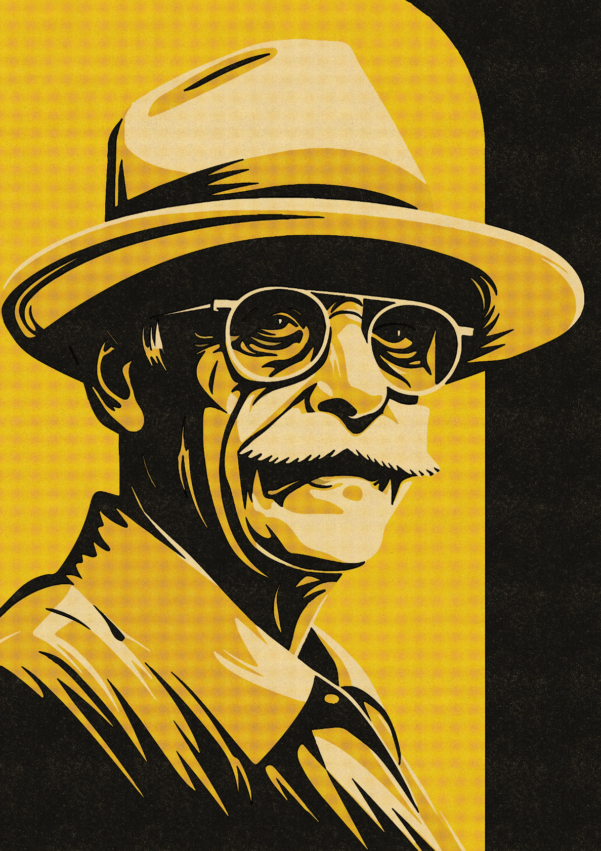 Delve into the captivating world of portraiture with this illustrated depiction of an old man. Detailed style screen-print style effect.