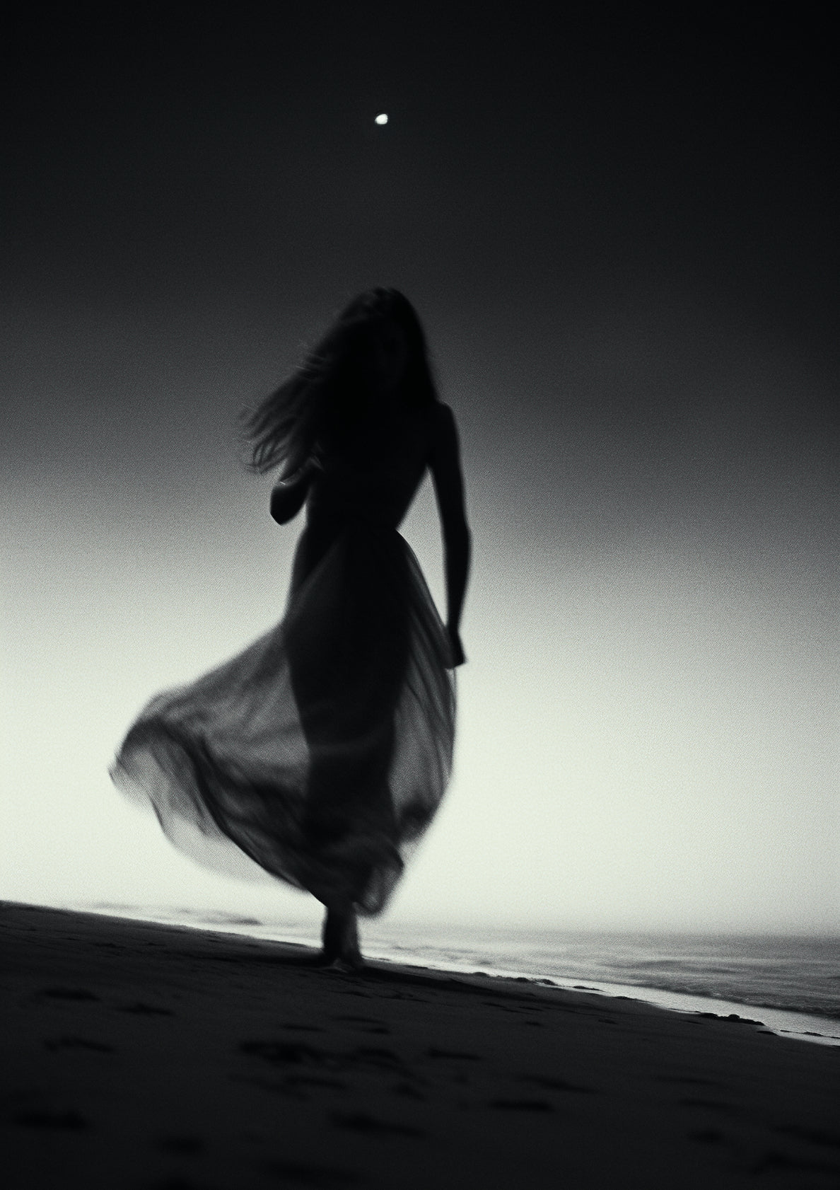 We met right before the sunset. Her footprints, fleeting patterns to be uncovered by the tides. As Jupiter was rising in the sky, she left before the night's breath could whisper secrets of the sea.