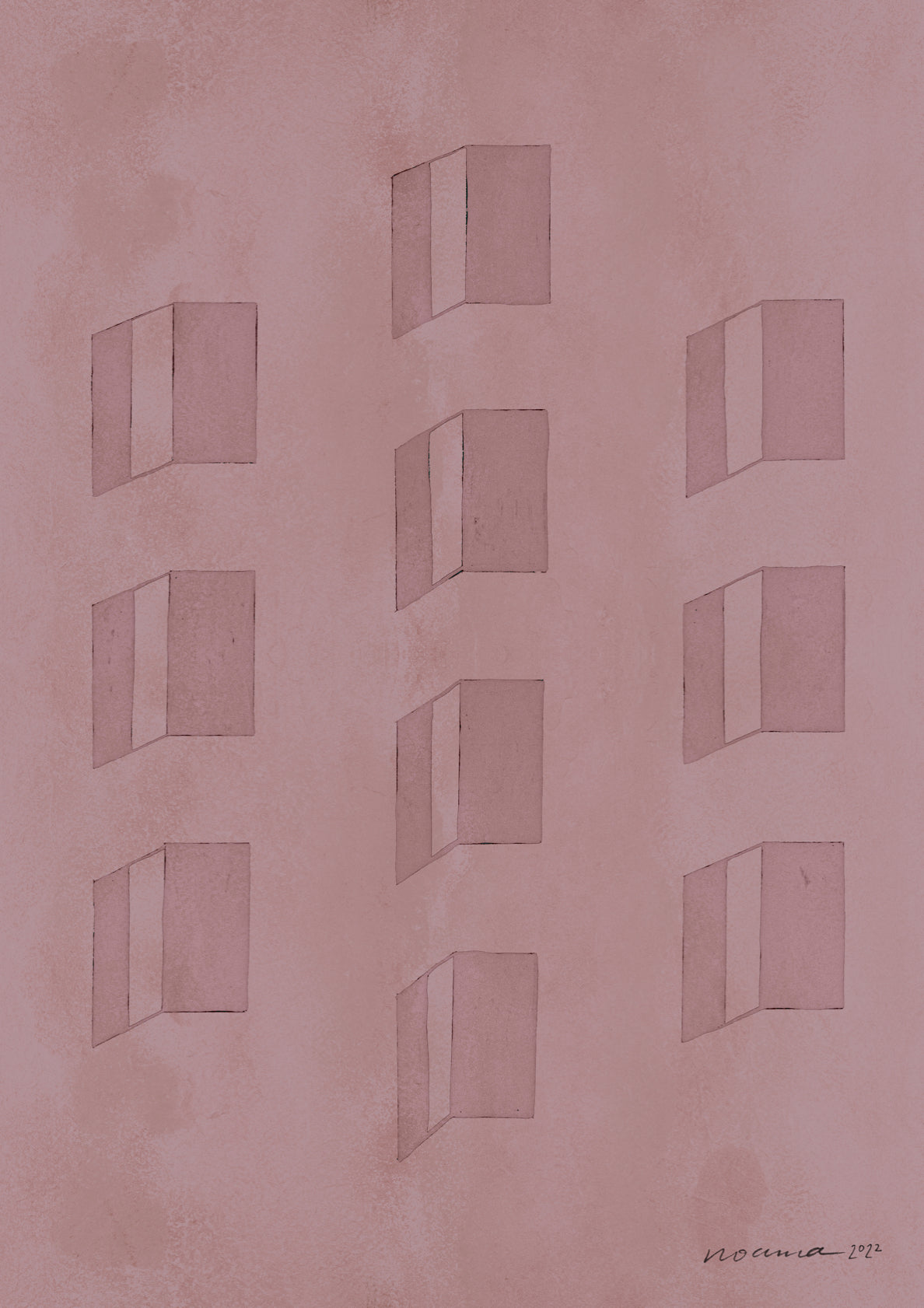 Modernist art print in dusky pink, inspired by a mid-century house on La Verne Way in Palm Springs. Read about our sustainable art practice at noama.co.uk