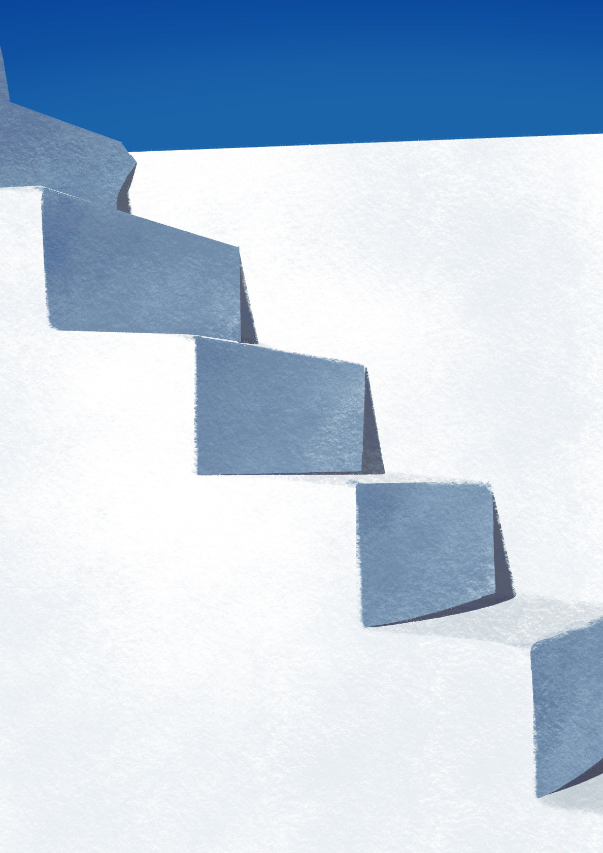 This artwork is part of a series of minimal digital paintings depicting the coastal landscape, seascape, streets and scenery of the beautiful and picturesque Mediterranean island of Santorini.