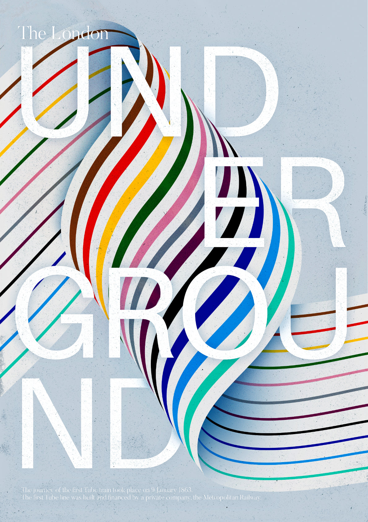Inspired by the City's famous underground train system featuring all the train line colours and flowing through a rigid typographic structure.