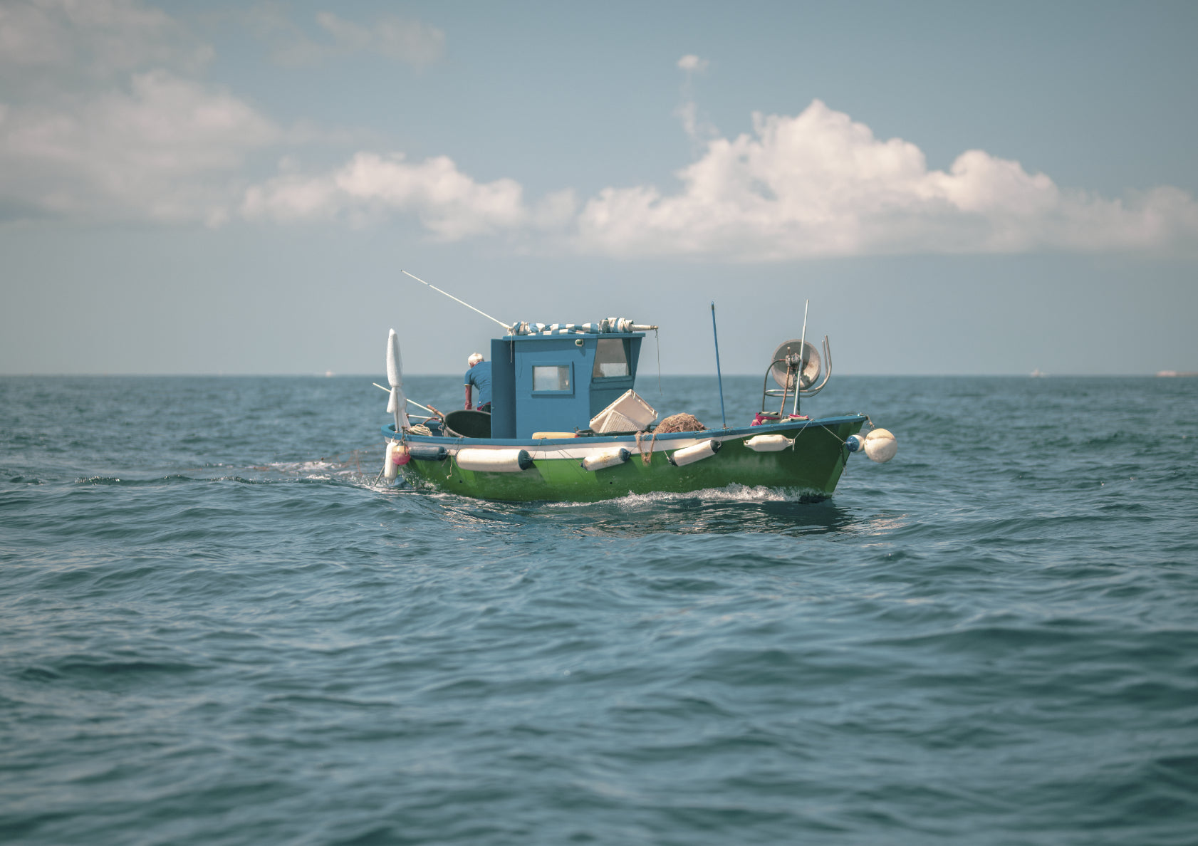 Kenzo Ejiri's 'Masaniello's Solitude': A timeless scene emerges — an older fisherman, adorned in blue, steering a solitary boat amidst Napoli's maritime poetry, an ode to the local serenity.