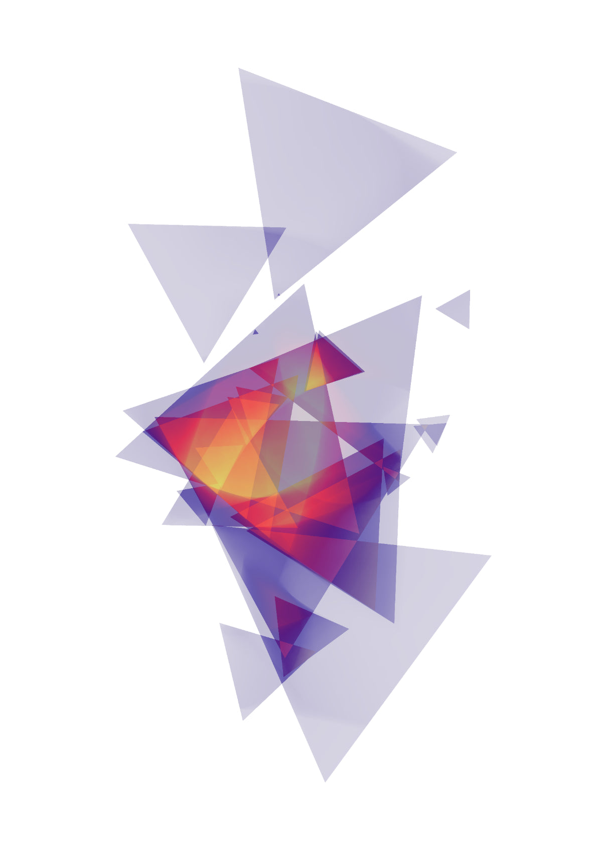 This picture was created by my program ShadowCatcher, which constructs abstract mathematical objects and then interprets them as images. Triangles anchored to bezier curves form the basis.