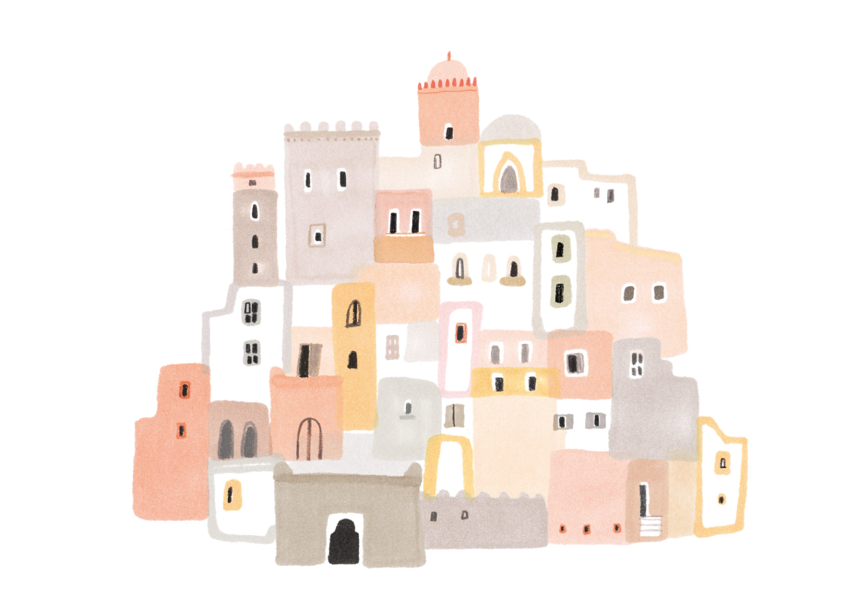 The original is hand drawn with markers and pencils on paper, the natural brushstrokes and textures are clearly visible.