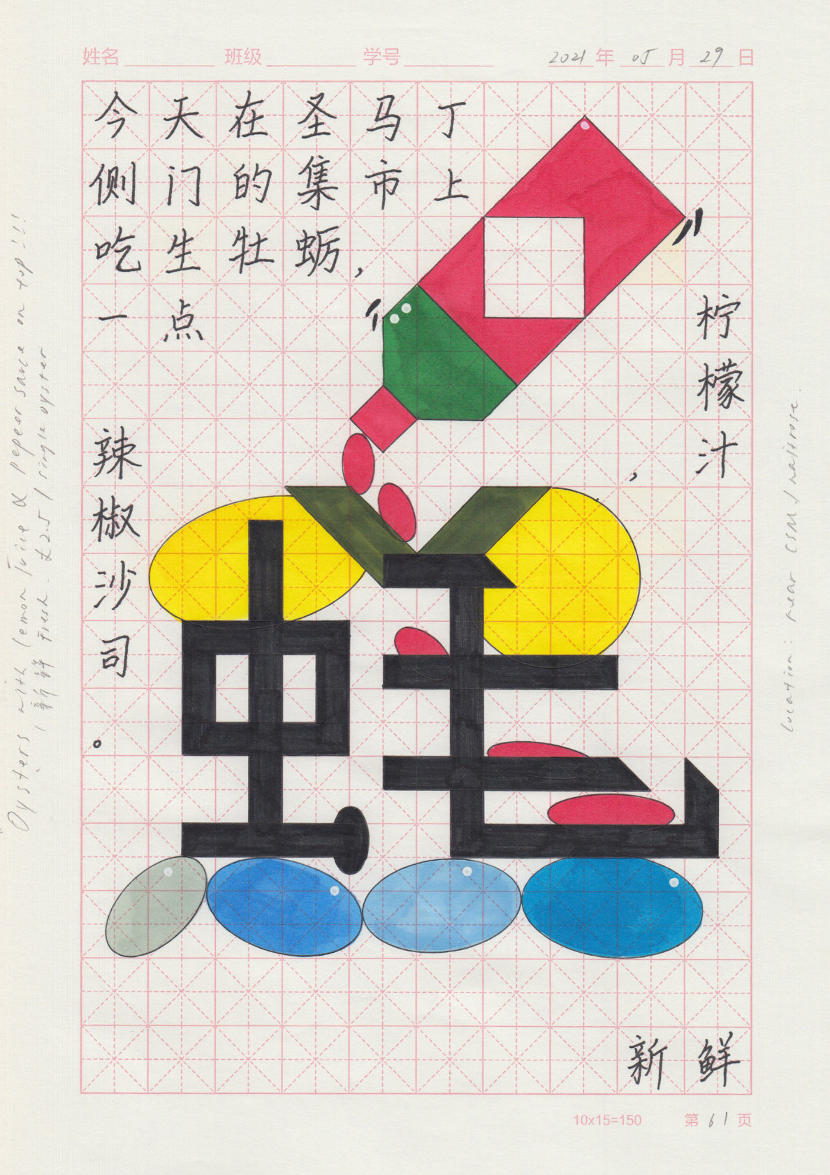 Day 61 of 100 Graphic Design Diaries project. Near Central Saint Martins, there's often a market with a small stall selling oysters sourced from various seas.
