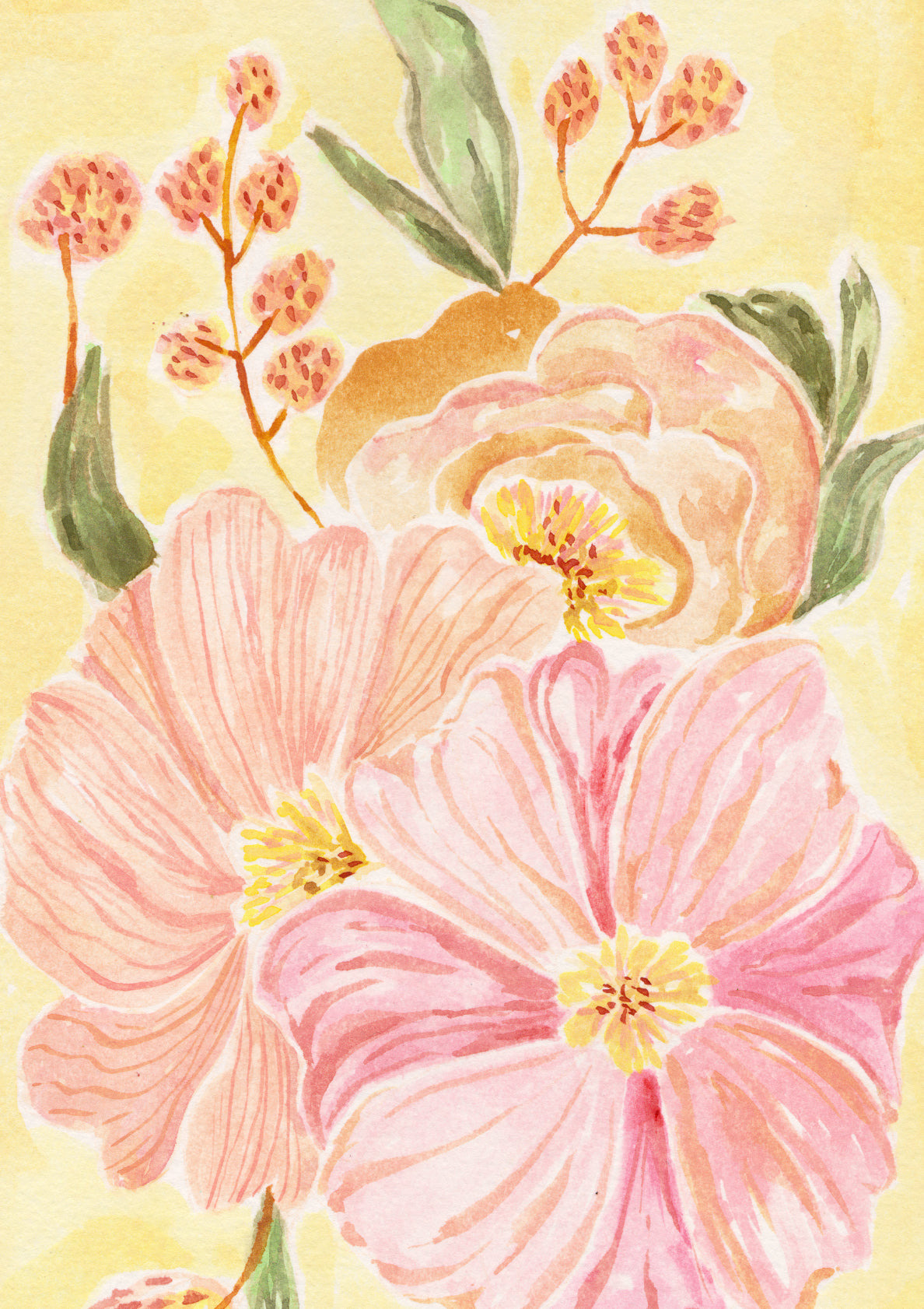Loose watercolor painting of florals in pastel colors that will be perfect in a coquette room.