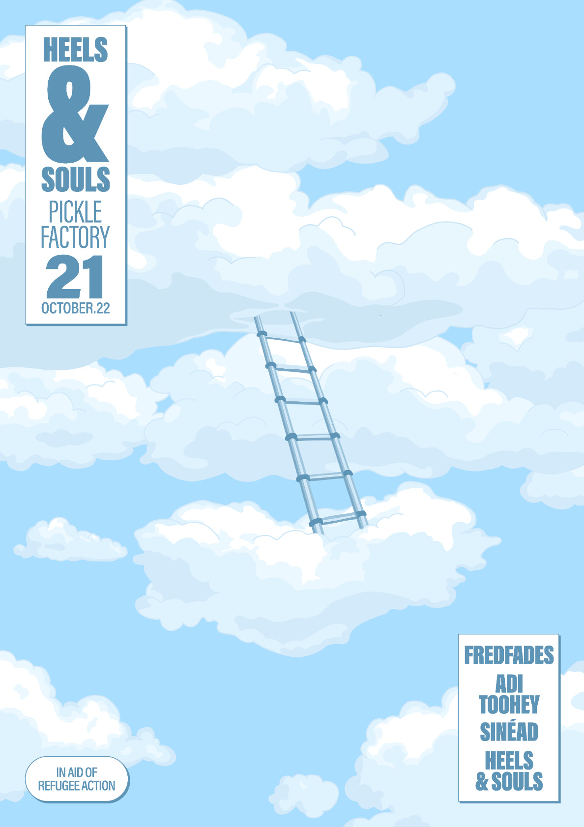 Illustrated and Designed by Really Really Studio for Heels & Souls ft Fredfades, Ad Toohey, Sinead at Pickle Factory. 10% of profit goes to Refugee action.