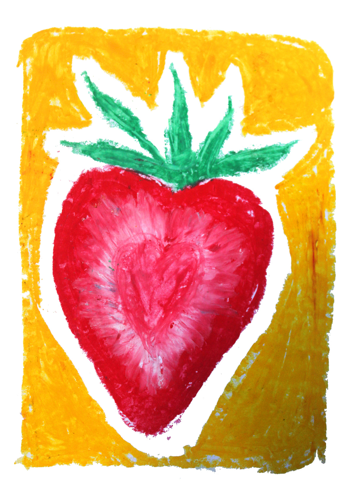 Strawberry hand drawn with oil pastels.