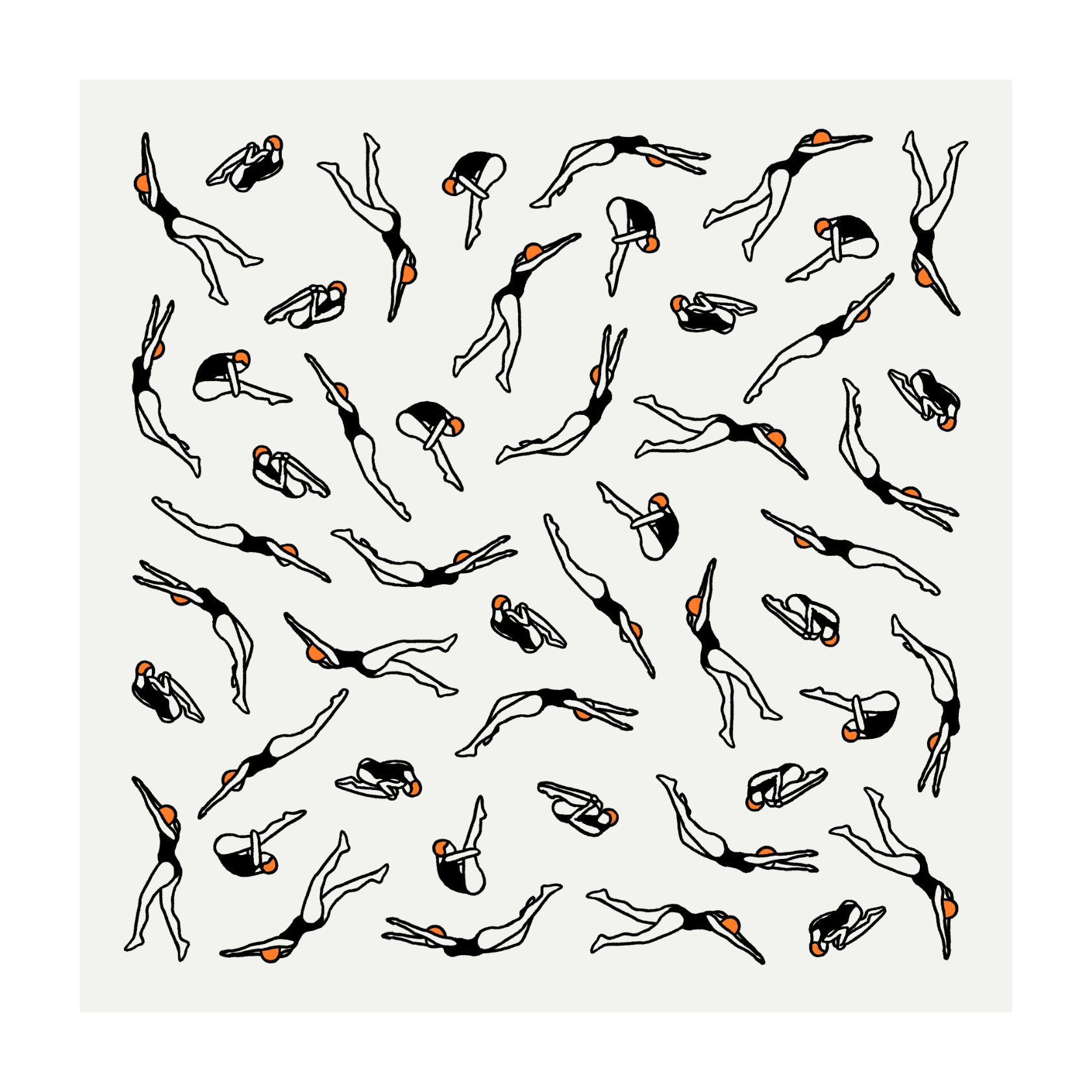 Relaxing composition of swimmers drawn by a person who cannot swim. Born from an appreciation for the art of swimming (which I cannot do).