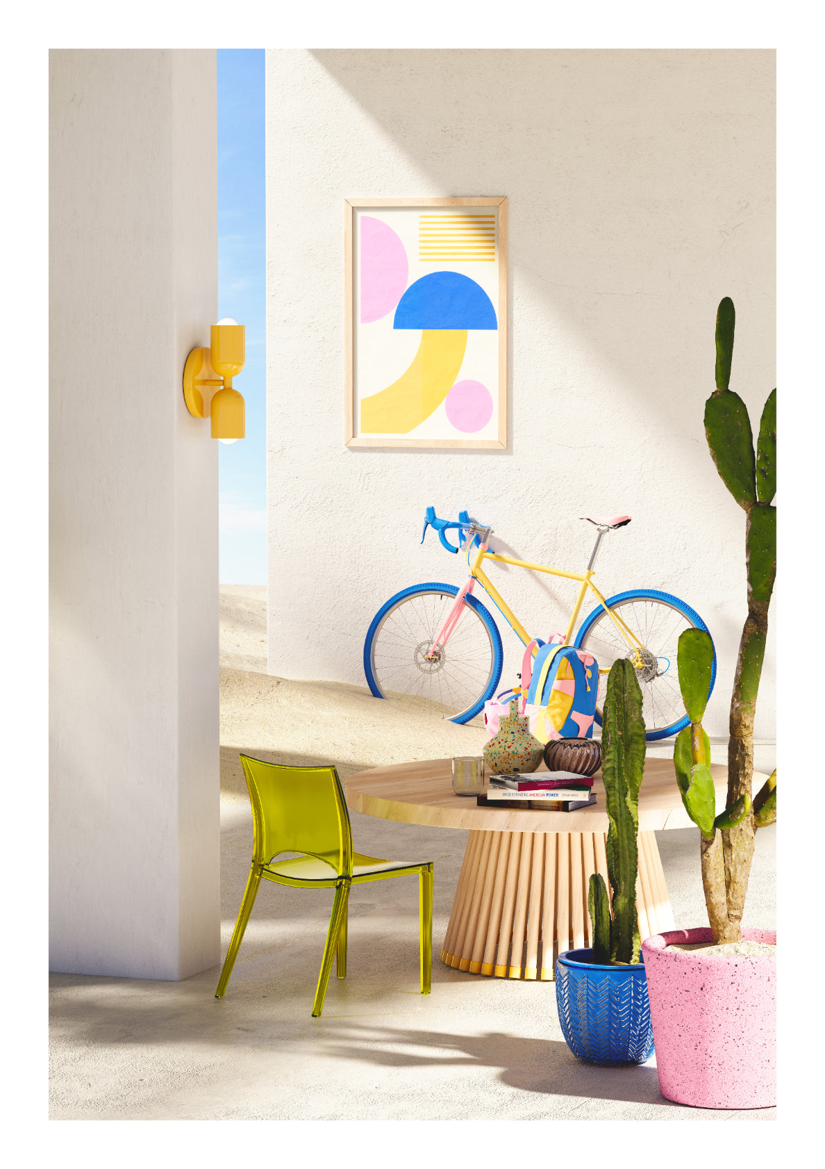 Just that feeling where you can jump on your bike at any moment and be free. The day to explore encourages that feeling with pinks, blues and yellows to give that extra punch to your space.