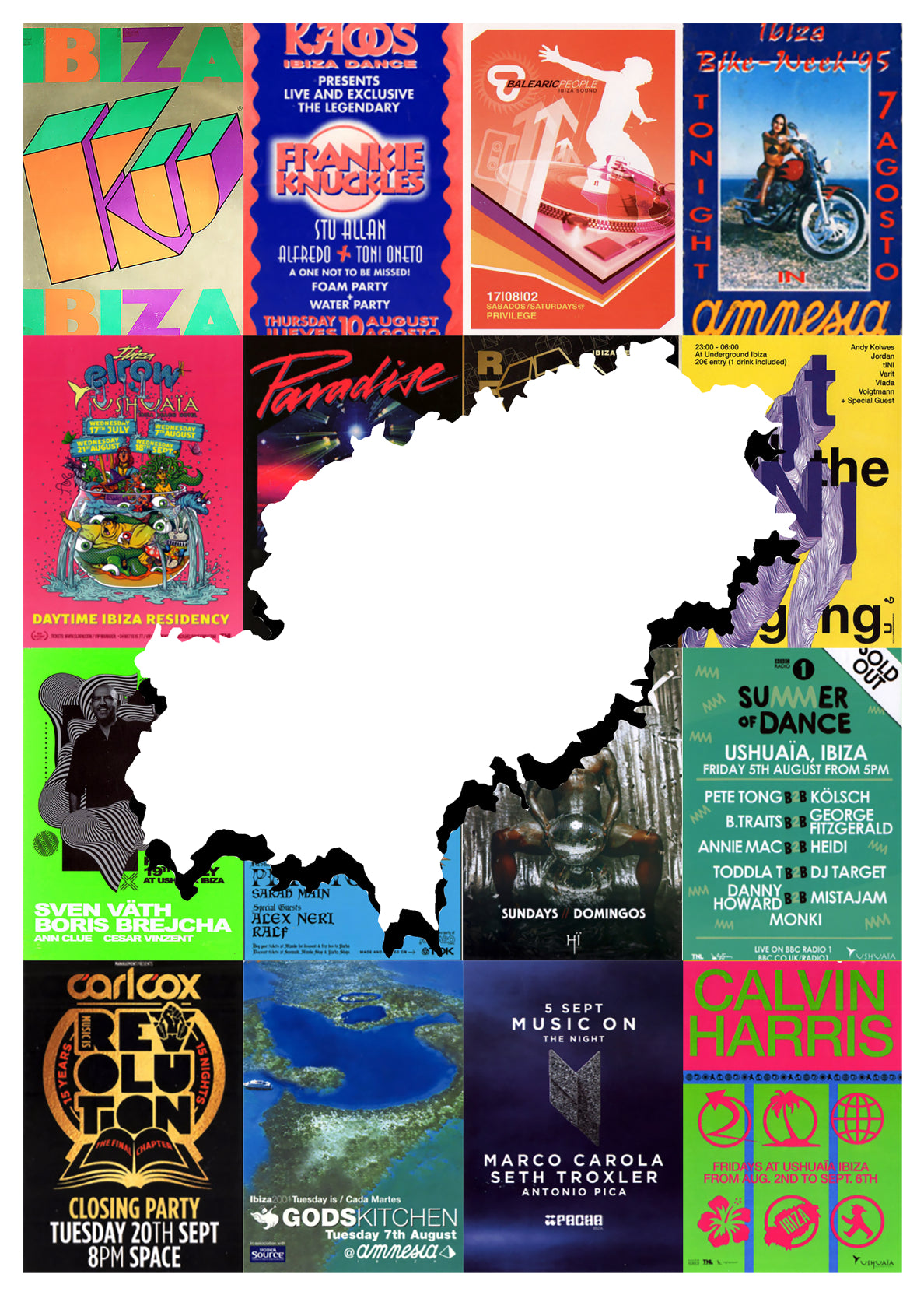Immerse yourself in the history of Ibiza's iconic clubbing scene, created from a selection of flyers from the 1980's to current day.