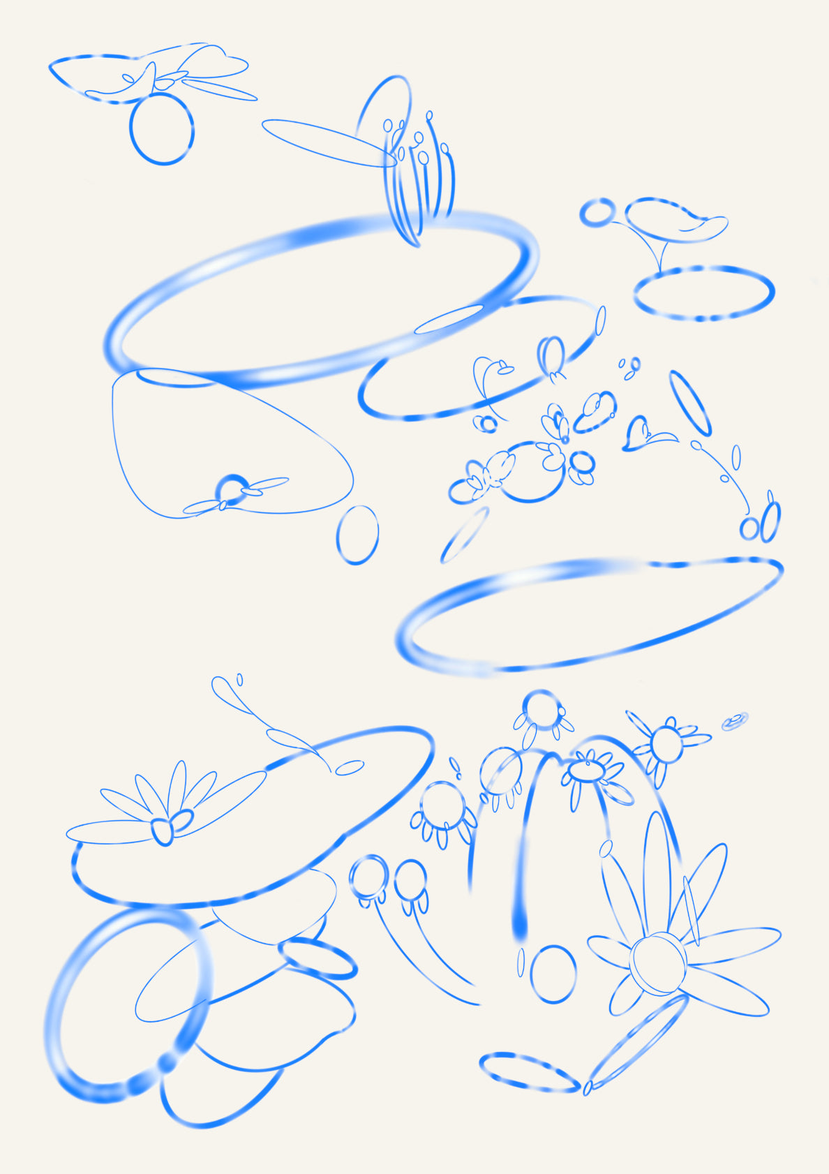 Achillea, daisies, alliums, nasturtiums and other things I don't know the names of any more. Grown in South Yorkshire and drawn as it slowly got dark.