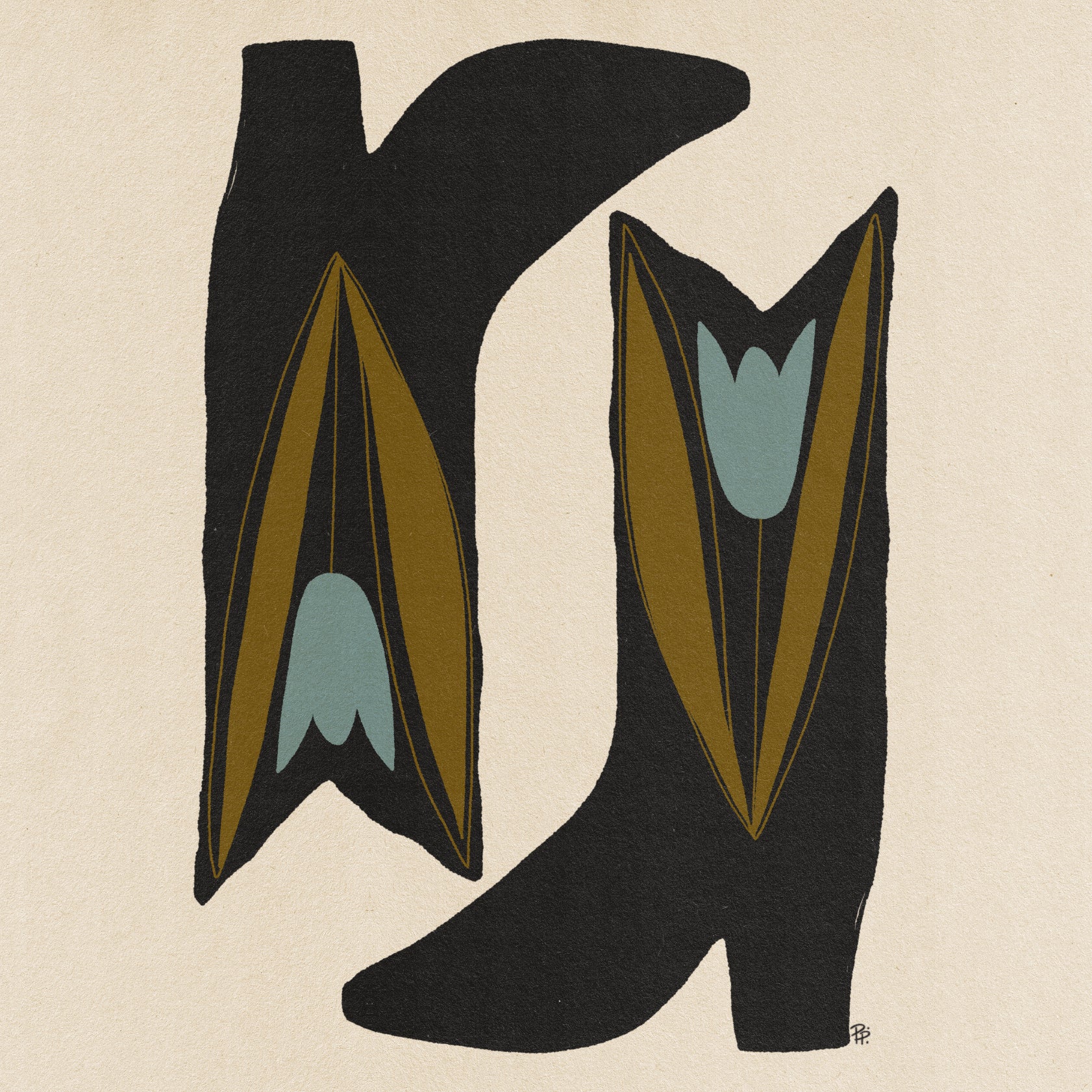 Vintage & abstract inspired floral cowgirl boots for winter by Parrott Paints