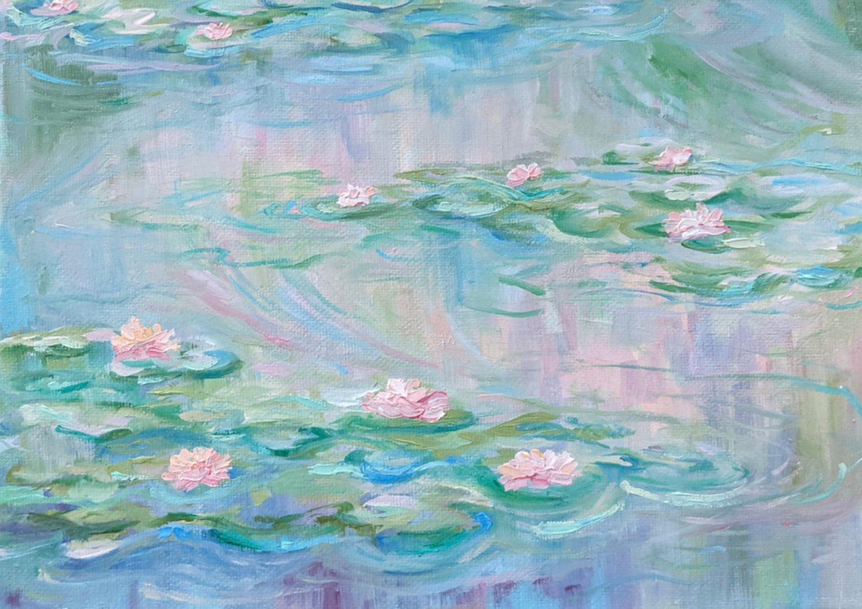 Inspired by Monet's work, gentle brush strokes and pastels making this piece a unique addition to any space.