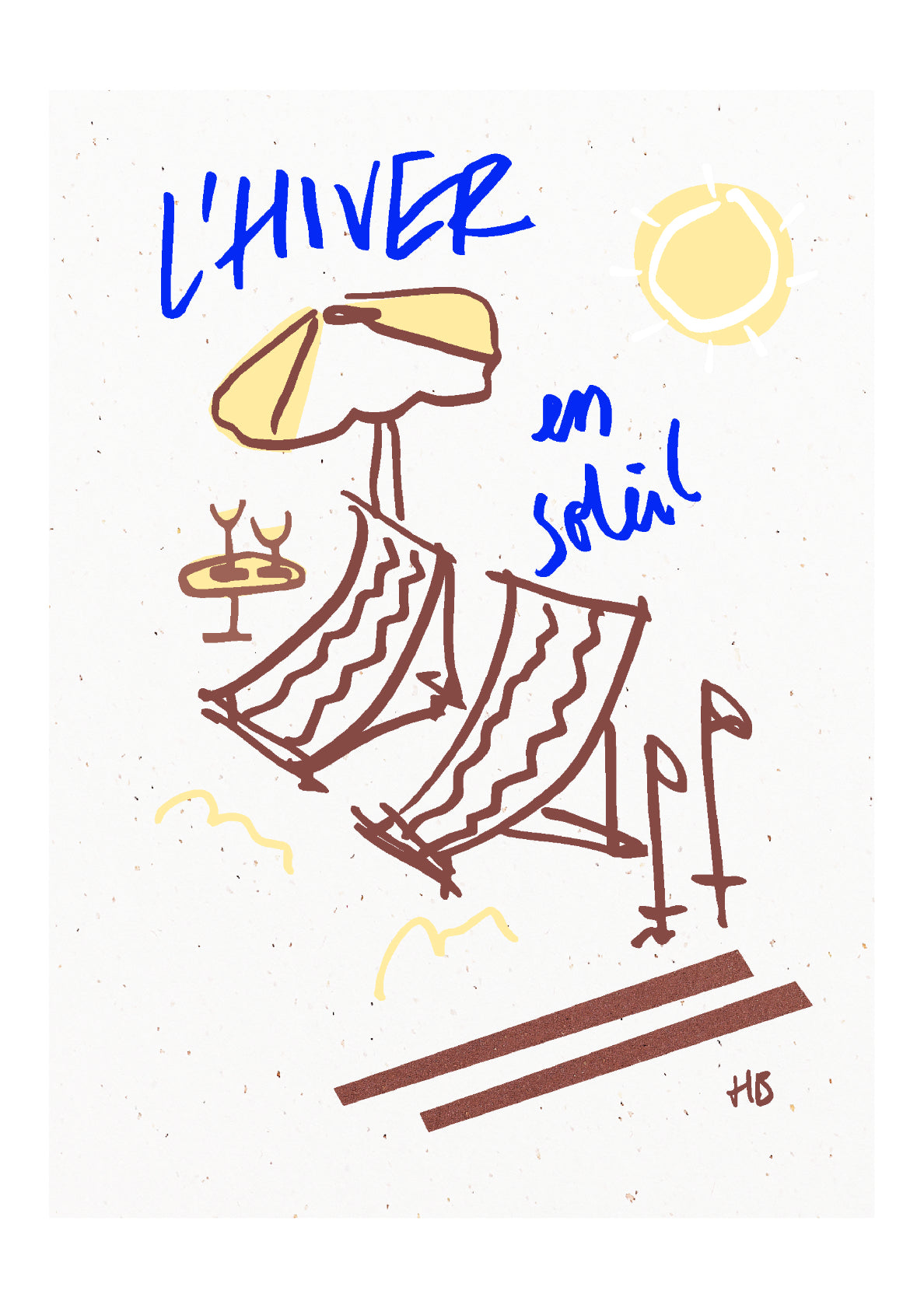 Inspired by spring ski seasons, this print is a relaxing piece for the home. To take you back to those sunny holidays reclining in a sun lounger on the slopes.